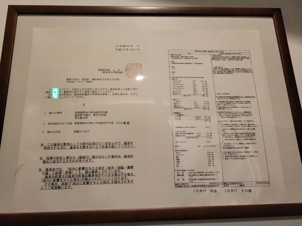 1号井戸と2号井戸があり、1号井戸は内湯、2号井戸はその他みたいですね。