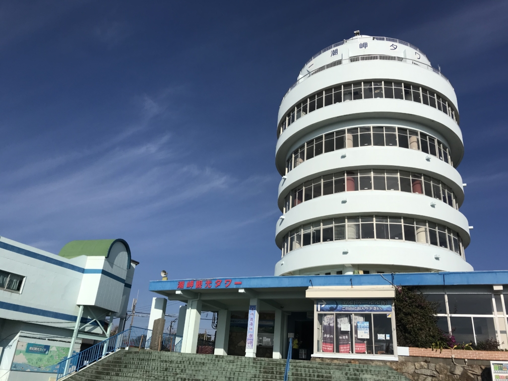 車で15分の距離に本州最南端の潮岬(しおのみさき)があり、展望台からの景色も眺めることができる。
