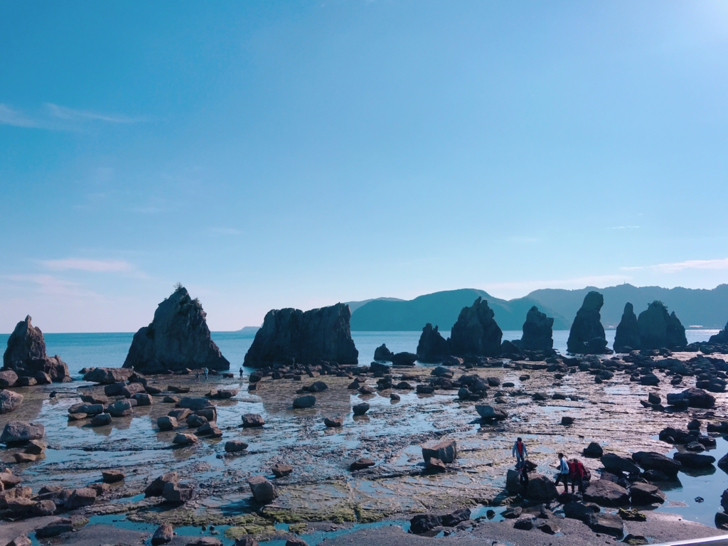 宿からも見える特殊な形をしている岩が並ぶ景勝地「橋杭岩(はしぐいいわ)」