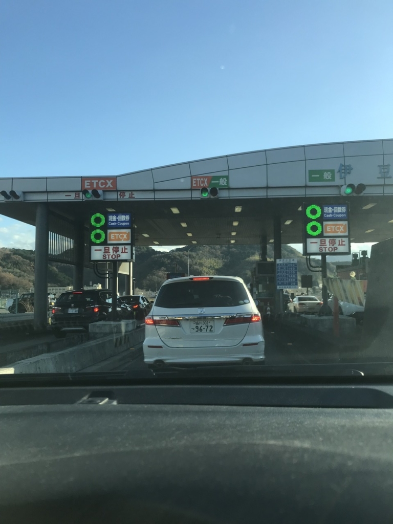有料道路に入る前に2度目の給油だ。時間は15時。チェックインは18時。あと3時間。やや押してきた。インター写真手前のガソリンスタンドもけっこう混んでいたけど、これより先、天城越えのルート。途中で道の駅と温泉に浸かっていきたい。